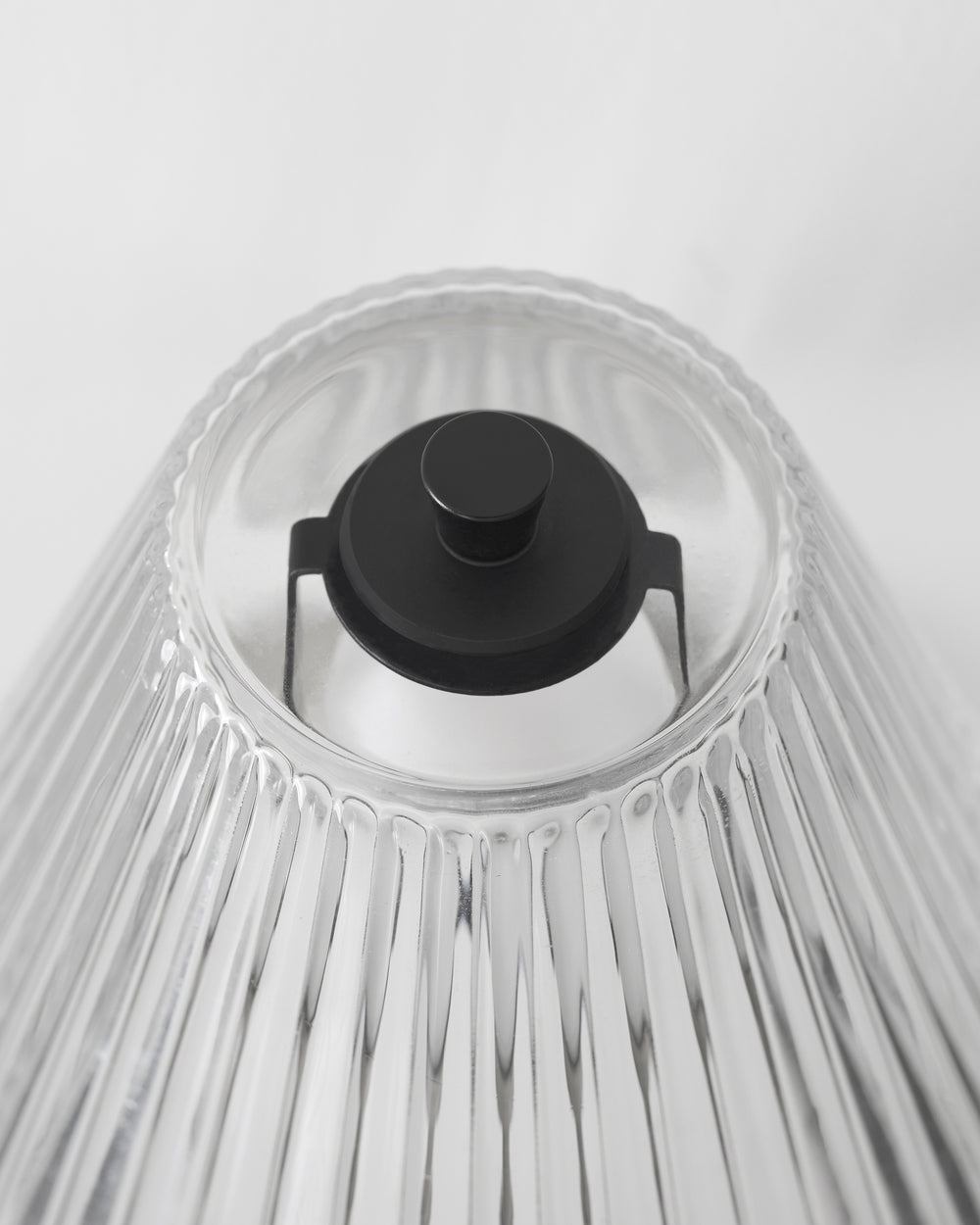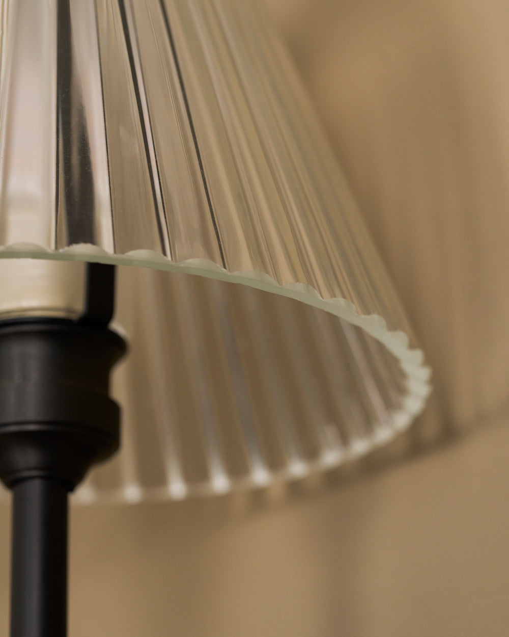 Drážkované skleněné stínidlo umožňuje osvětlení v rozsahu 360 stupňů a vytváří nadčasový dojem.