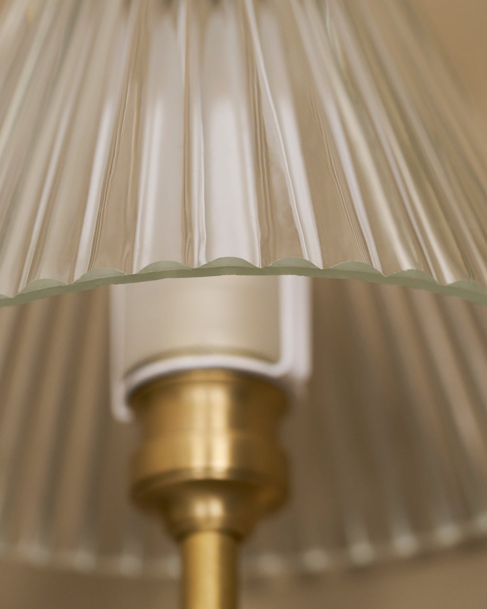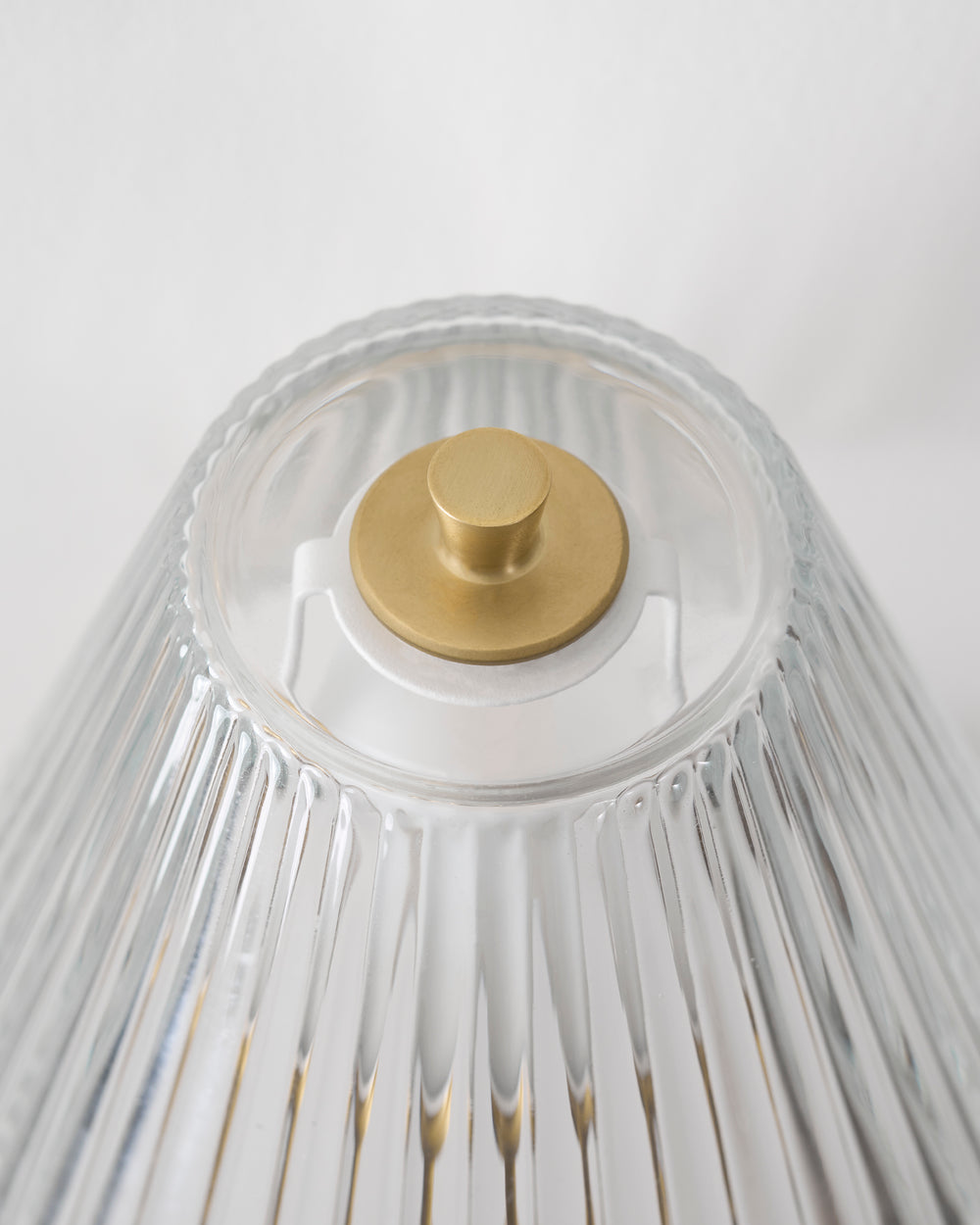 Drážkované skleněné stínidlo umožňuje osvětlení v rozsahu 360 stupňů a vytváří nadčasový dojem.