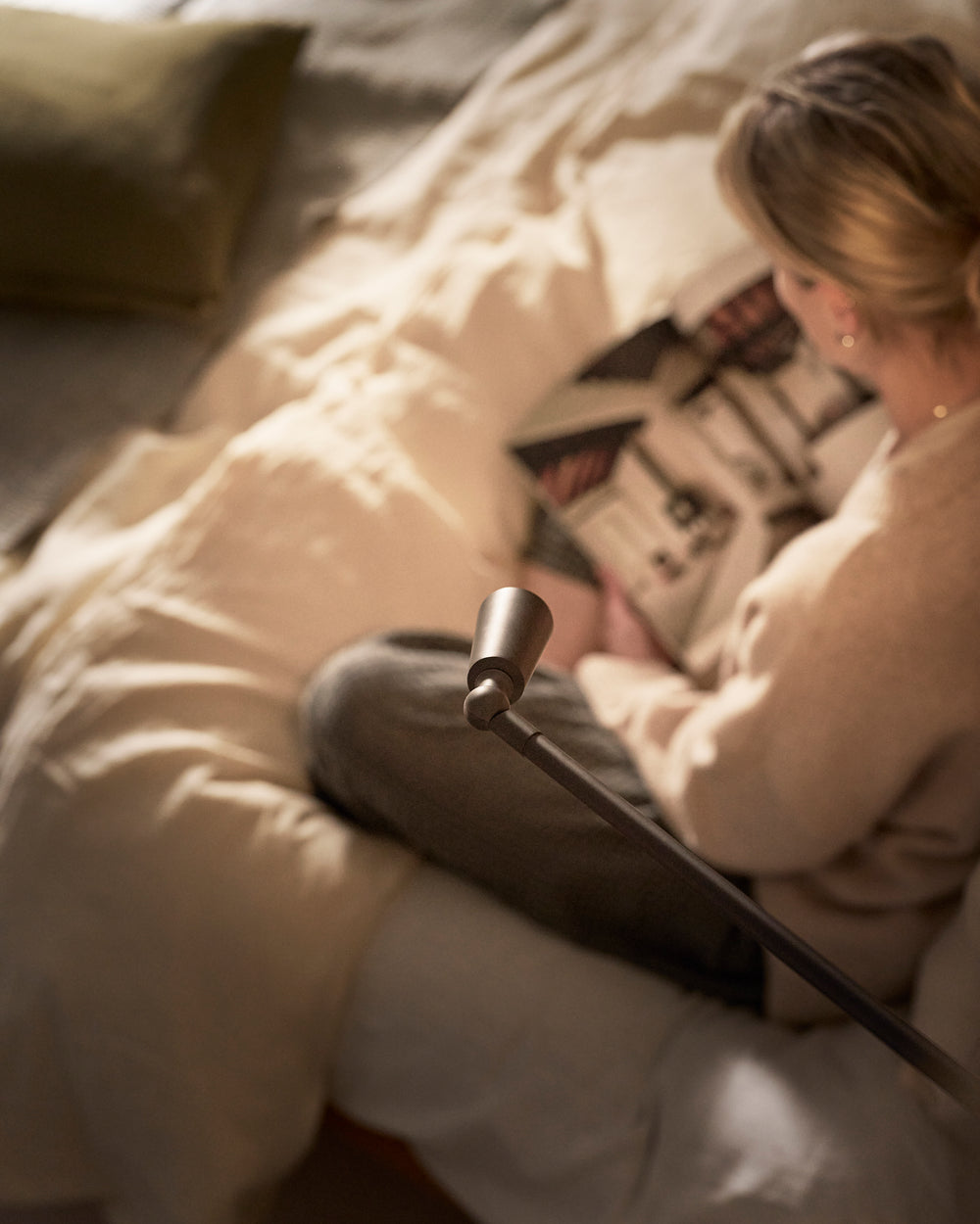 Naše čtecí lampa Sloane je ideální k posteli.