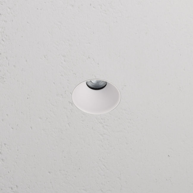 Der Deckenstrahler Buxton kann bündig in die Decke eingegipst werden, da er keinen Rand hat, der von der Decke abstehen würde.