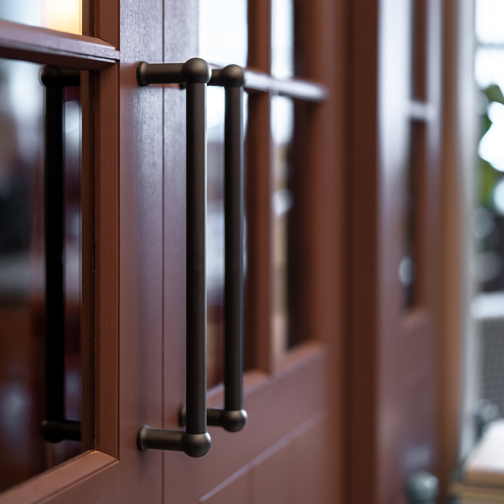Der schlichte Doppelziehgriff der Reihe Harper ist ideal für Türen, die zum Öffnen und Schließen keine gefederten Griffe benötigen.