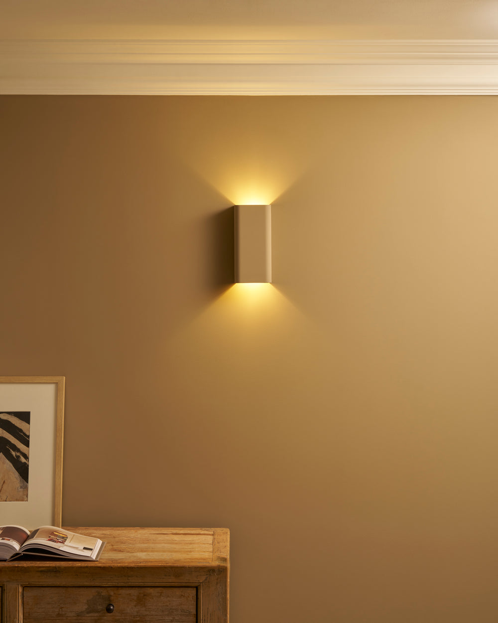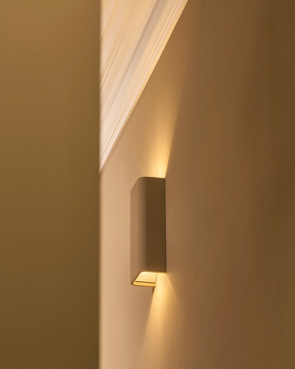 Unsere dezente Camden Kollektion ist aus lackierbarem Gips gefertigt, sodass sich die Leuchten mühelos in die Wand einfügen.