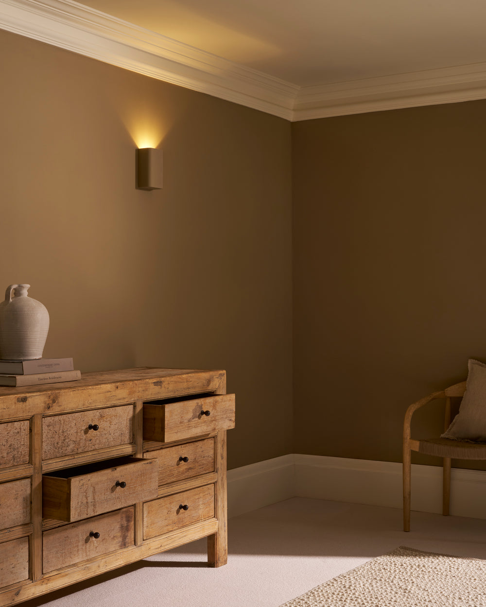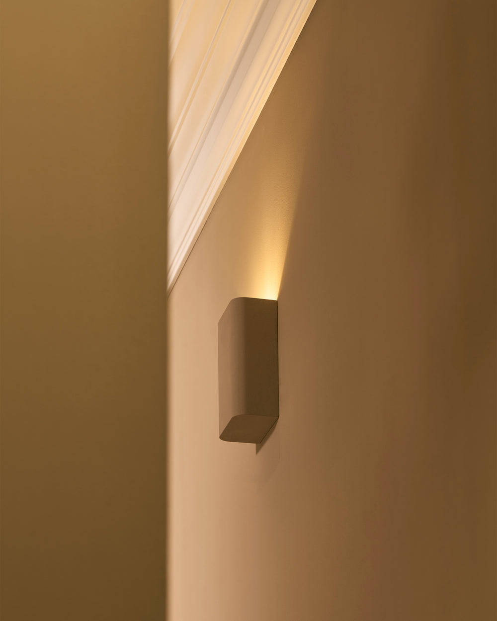 Unsere dezente Camden Kollektion ist aus lackierbarem Gips gefertigt, sodass sich die Leuchten mühelos in die Wand einfügen.