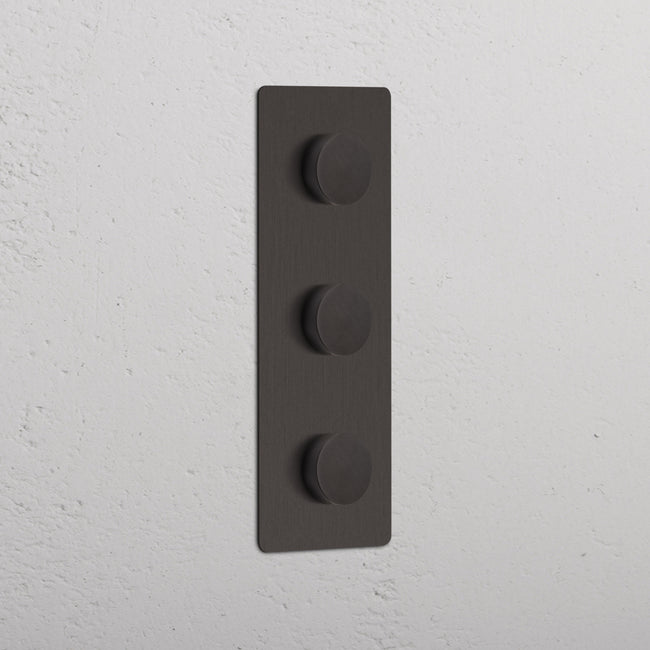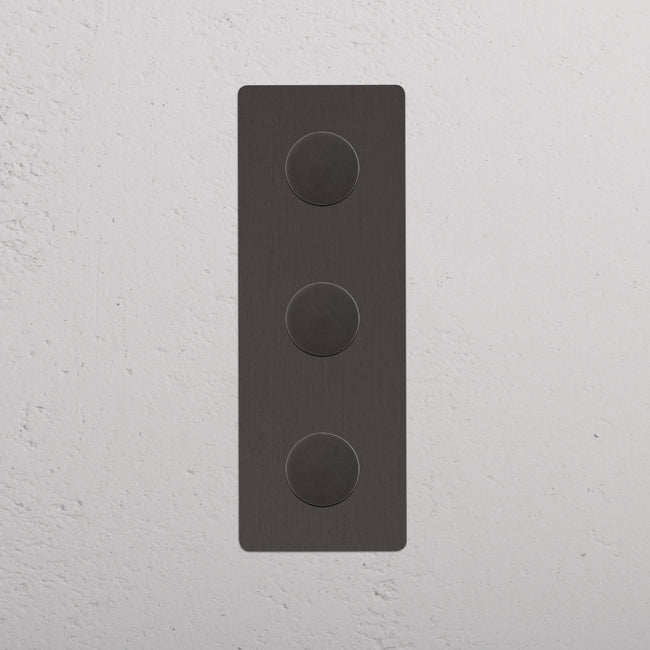 Die Silhouette unseres vertikalen Mehrpunktschalters mit 3 Dimmerknöpfen wirkt in jedem Interieur elegant und zeitlos.