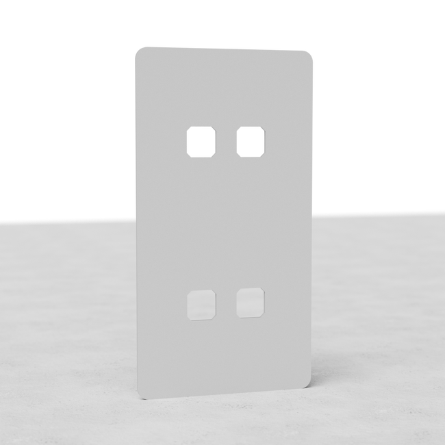 Wählen Sie vier Kipphebelschalter aus, um sie in diesen lackierbaren vertikalen Zweifachrahmen 4x Kew einzufügen. Wenn Sie einen Drehdimmknopf hinzufügen möchten, wählen Sie bitte unseren Zweifachschalterrahmen 2x, den Sie vertikal montieren können.