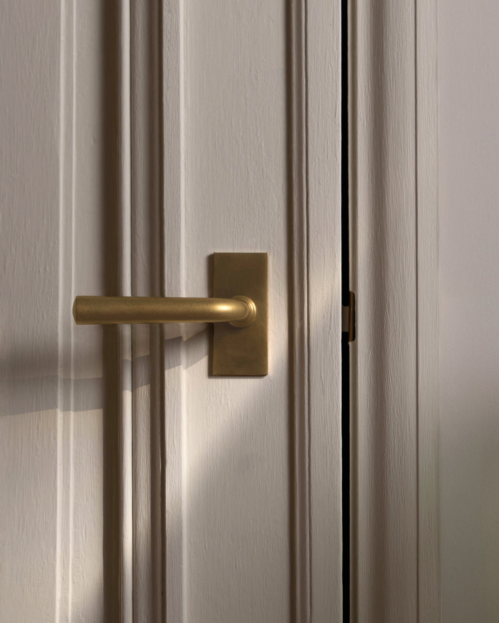 Im Inneren befindet sich ein Federmechanismus, der stark genug ist, um das Gewicht des Griffs aus Massivmessing zu tragen. Der Griff eignet sich auch für Schlösser ohne Feder, da er selbst gefedert ist.