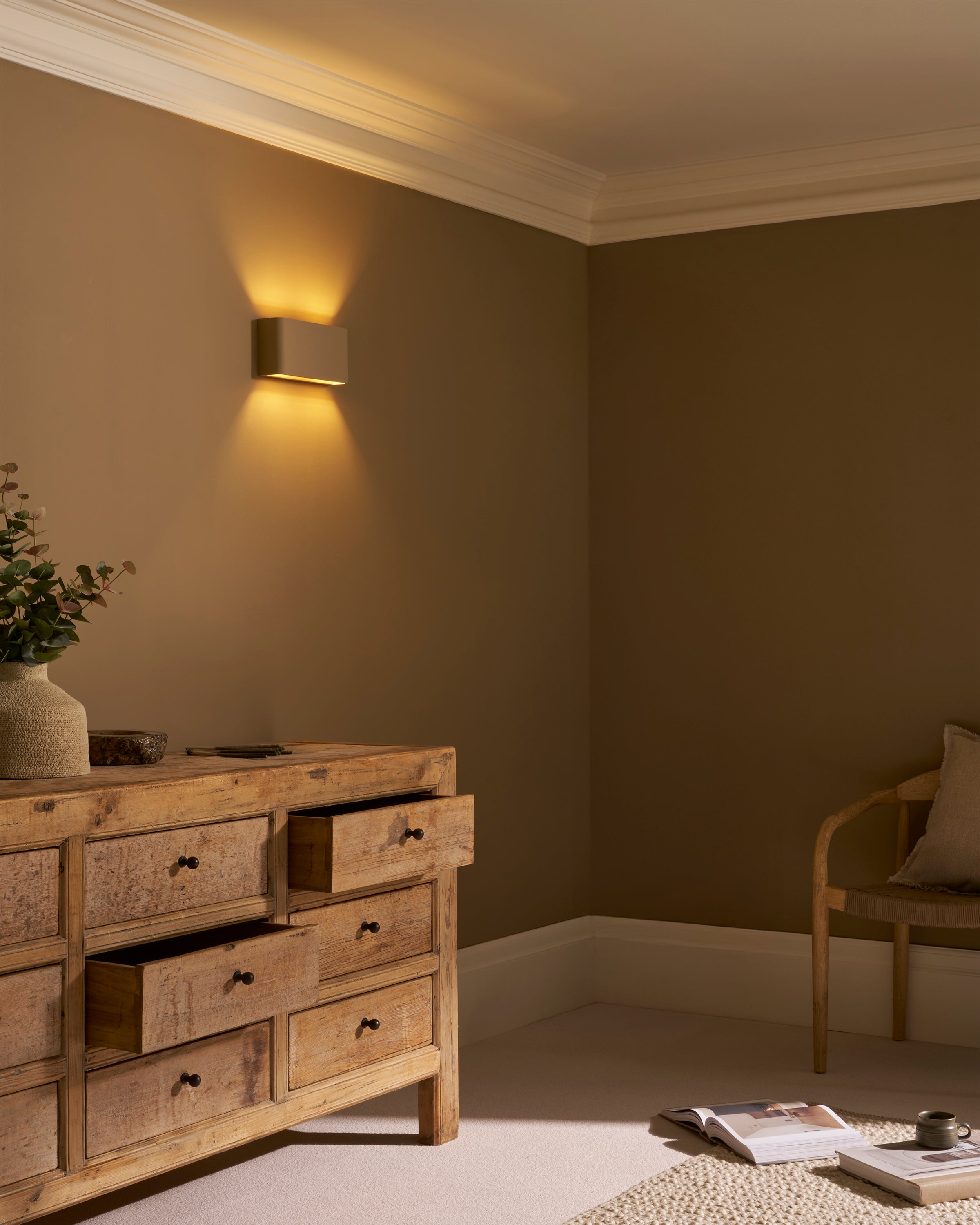 Unsere dezente Camden Kollektion ist aus lackierbarem Gips gefertigt, sodass sich die Leuchten mühelos in die Wand einfügen.