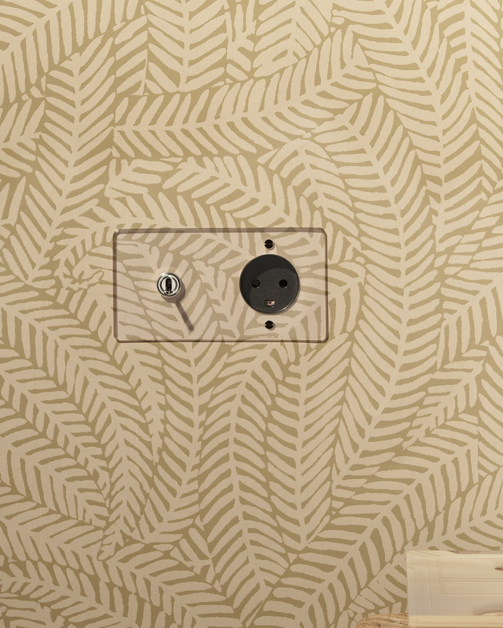 Der äußerst flache Rahmen, der sich bündig an die Wand schmiegt, macht diesen Schalter besonders diskret.