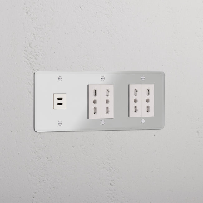 Diese Dreifachsteckdose kombiniert ein USB-C-Modul und 4 Bipasso-Anschlüsse in einem Rahmen.