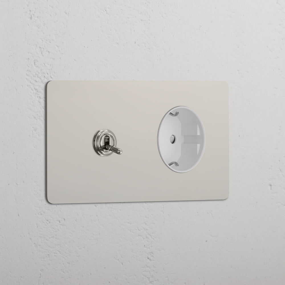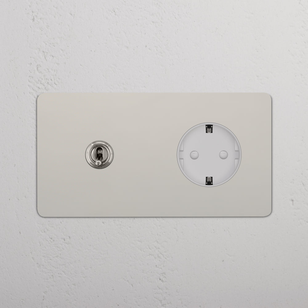 This double mixed switch and socket combines a two-way toggle switch and Schuko socket on one plate.