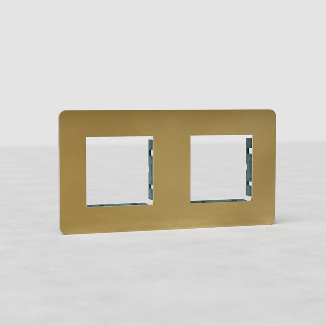 This Grove double 45mm module plate in antique brass works with any two of our antique brass rocker switches or our 45mm socket modules.