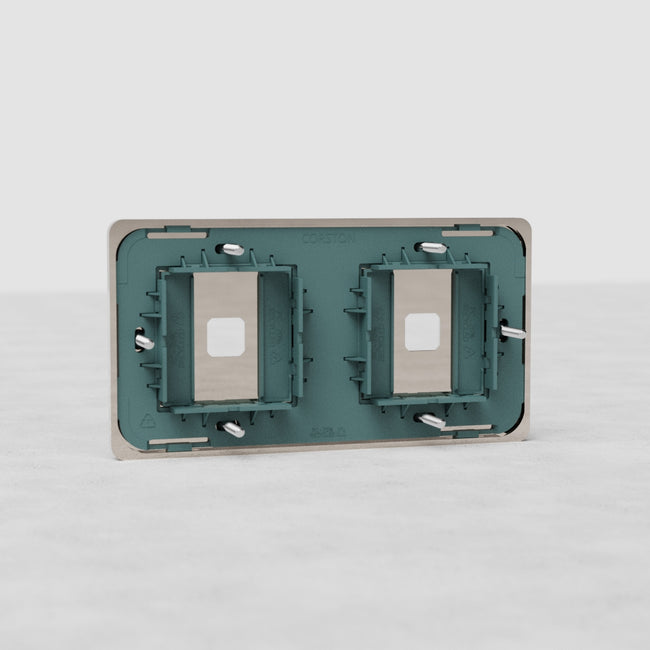 This Grove double 2x switch plate in polished nickel works with any two of our polished nickel toggle or rotary dimmer switches.
