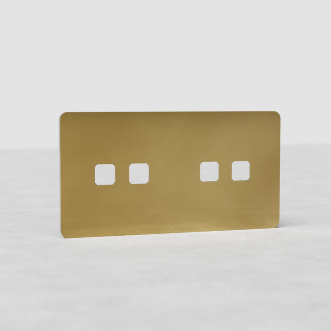 This Grove double 4x switch plate in antique brass works with any four of our antique brass toggle switches. If you’d like to add a rotary dimmer switch, you’ll need to use either our double 2x or double 2+1 switch plate.