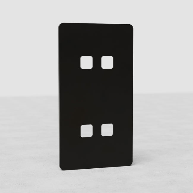 This Grove double 4x vertical switch plate in bronze works with any four of our bronze toggle switches. If you’d like to add a rotary dimmer switch, you’ll need to use our double 2x switch plate, which you can fit in a vertical position.