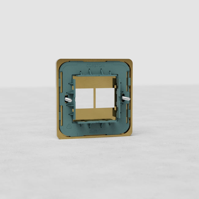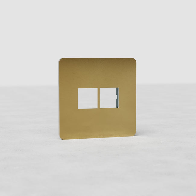 This Grove single 2x keystone module plate in antique brass works with any two of our 20mm keystone modules, except our USB-C module. Our USB module is bigger than our other keystone modules and two won’t fit next to each other on this plate.