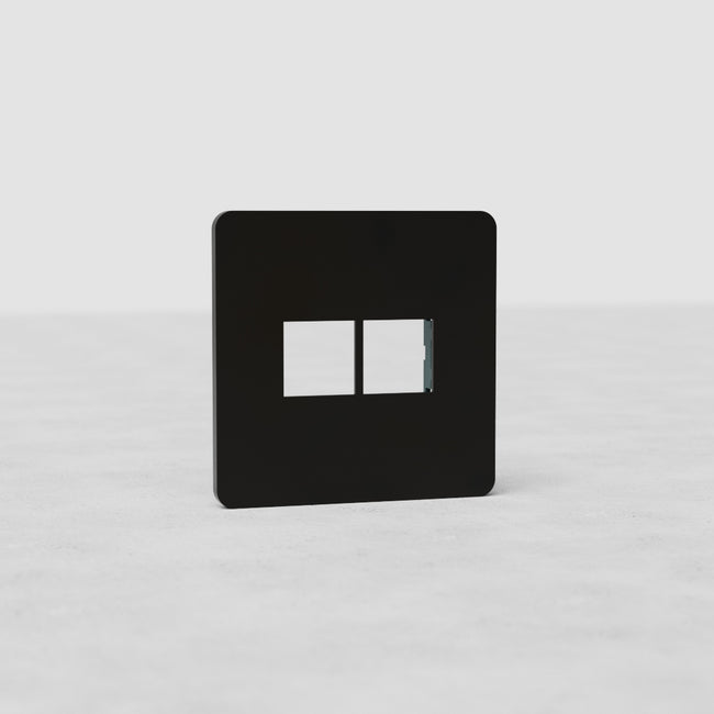 This Grove single 2x keystone module plate in bronze works with any two of our 20mm keystone modules, except our USB-C module (just make sure you choose the ones made with black plastic). Our USB module is bigger than our other keystone modules and two won’t fit next to each other on this plate. You can use our double 2x keystone plate instead.