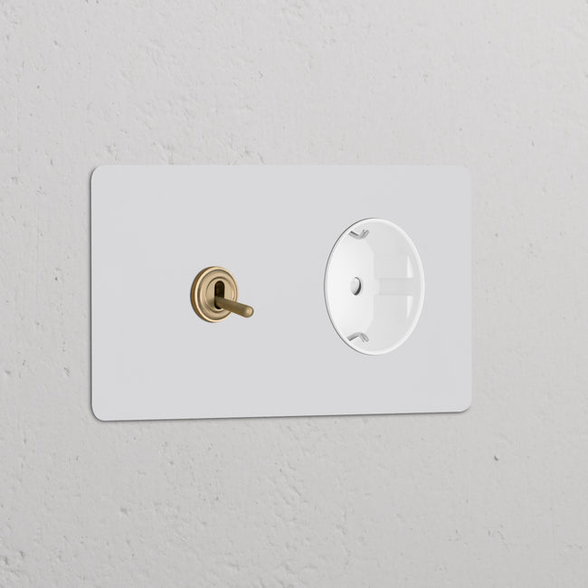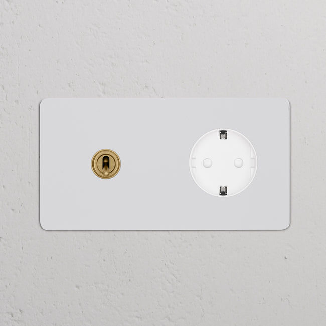 This double mixed switch and socket combines a two-way toggle switch and Schuko socket on one plate.