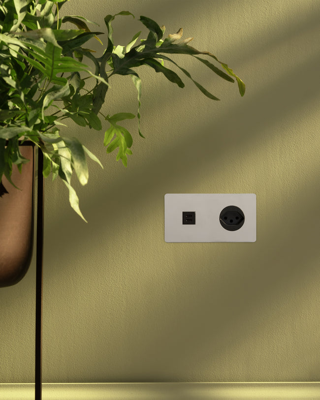 This double mixed socket combines a USB-C and Swiss socket on one plate.