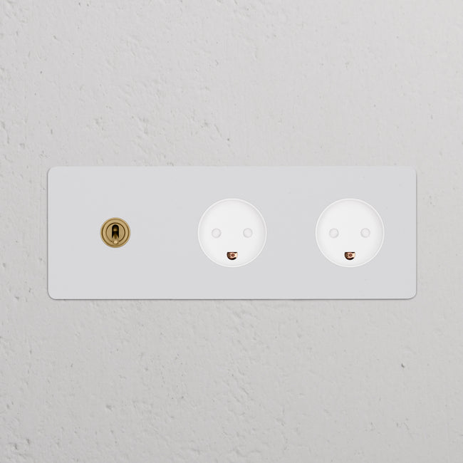 This triple mixed switch and socket combines a two-way toggle switch and two Danish sockets on one plate.