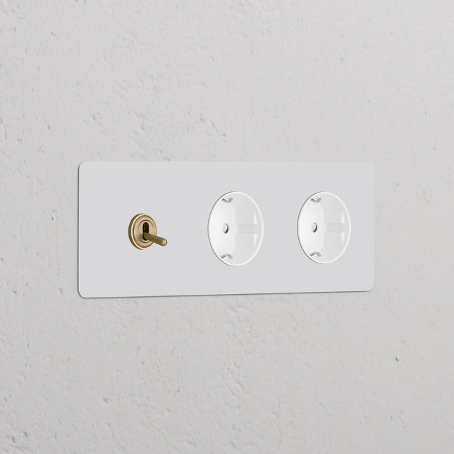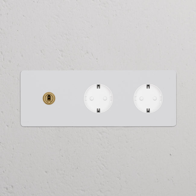 This triple mixed switch and socket combines a two-way toggle switch and two Schuko sockets on one plate.