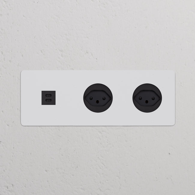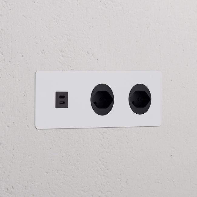 This triple mixed socket combines a USB-C and two Swiss sockets on one plate.