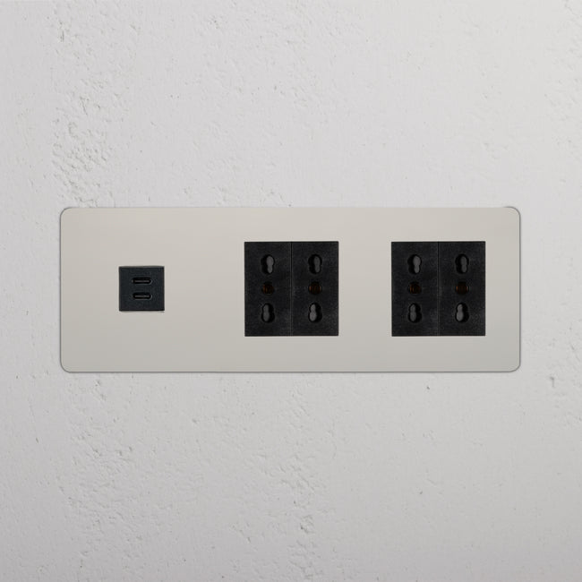 This triple mixed socket combines a USB-C and four Bipasso sockets on one plate.