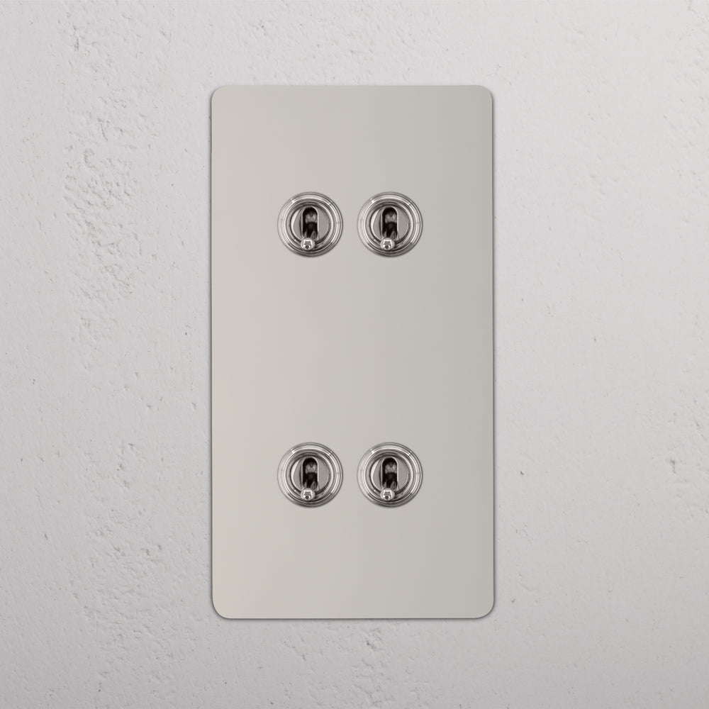 Our double 4x vertical two-way toggle switch is a modern take on the classic dolly design. We’ve crafted it to be as sleek and timeless as possible in any interior setting.