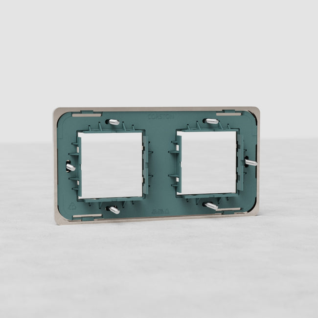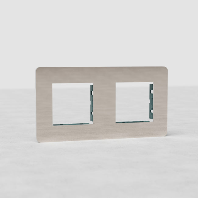 This Grove double 45mm module plate in polished nickel works with any two of our polished nickel rocker switches or our 45mm socket modules.
