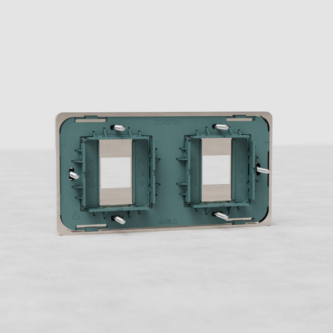 This Grove double 2x keystone module plate in polished nickel works with any two of our 20mm keystone modules.