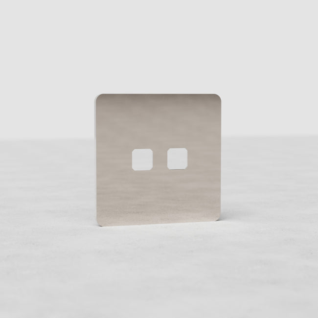 This Grove single 2x switch plate in polished nickel works with any two of our polished nickel toggle switches. If you’d like to add a rotary dimmer switch, you’ll need to use our double 2x switch plate.