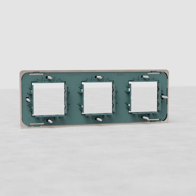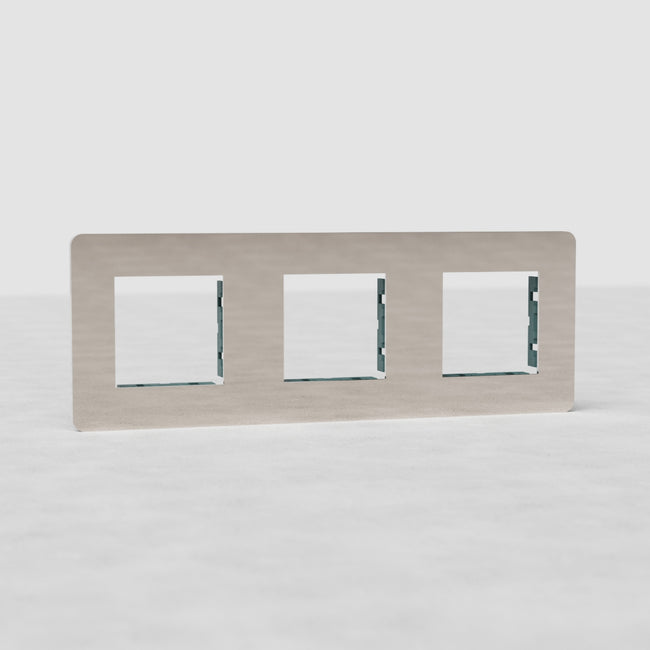 This Grove triple 45mm module plate in polished nickel works with any three of our polished nickel rocker switches or our 45mm socket modules.