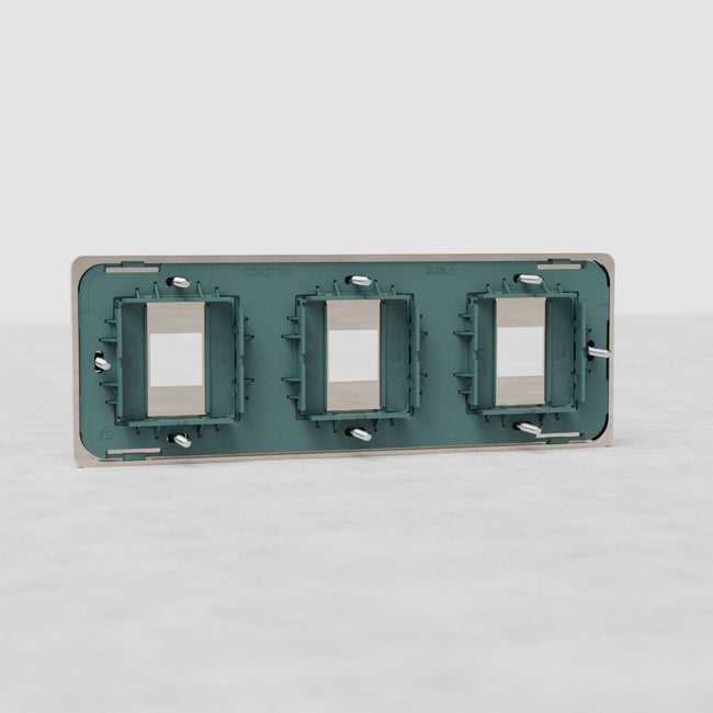 This Grove triple 3x keystone module plate in polished nickel works with any three of our 20mm keystone modules.