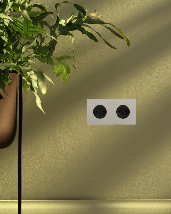 Our double 2x Swiss socket is crafted to be as sleek and timeless as possible in any interior setting.