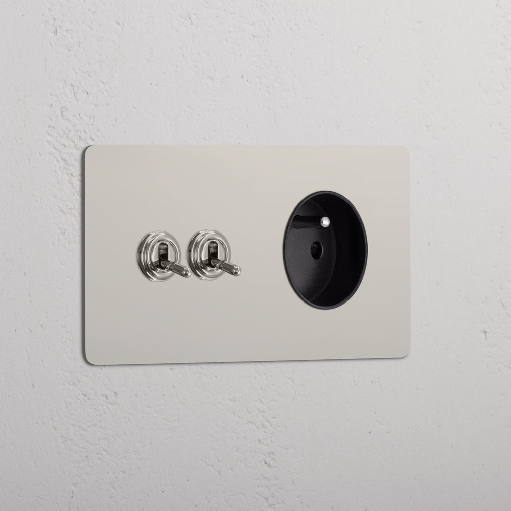 Kew Double 2x Toggle & French/Belgian Type E Socket - Polished Nickel | Black