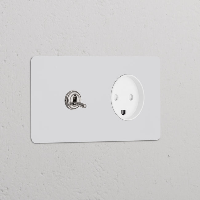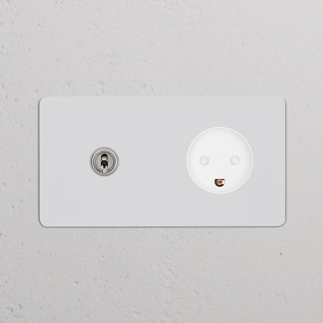 This double mixed switch and socket combines a two-way toggle switch and Danish socket on one plate.