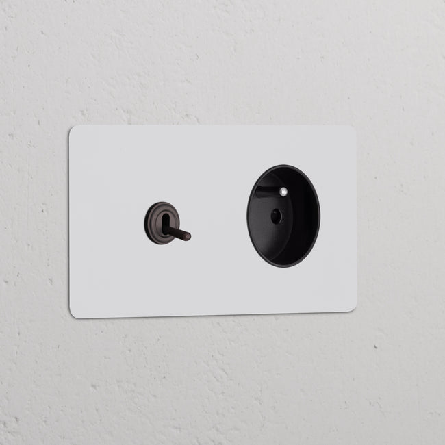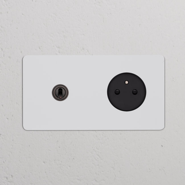 This double mixed switch and socket combines a two-way toggle switch and French/Belgian socket on one plate.