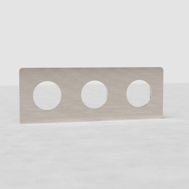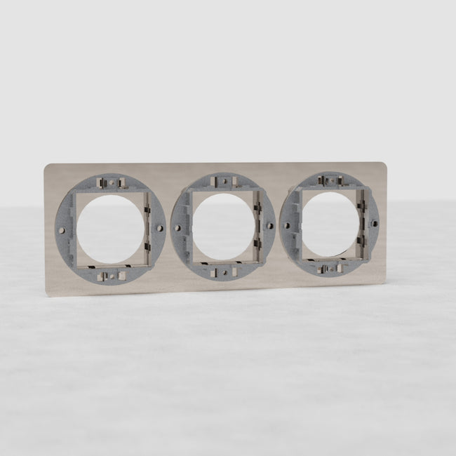 This Kew triple socket plate in polished nickel works with any three of our round socket modules.
