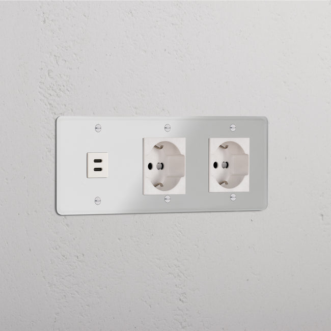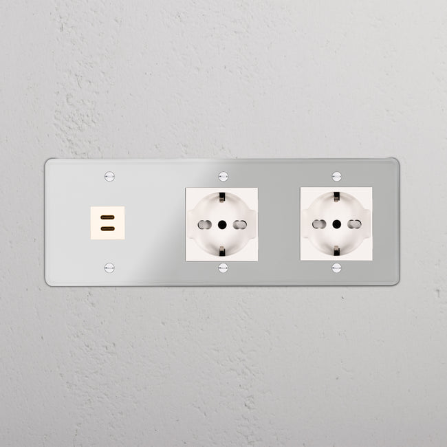 This triple mixed socket combines a USB-C and two Schuko/Bipasso sockets on one plate.