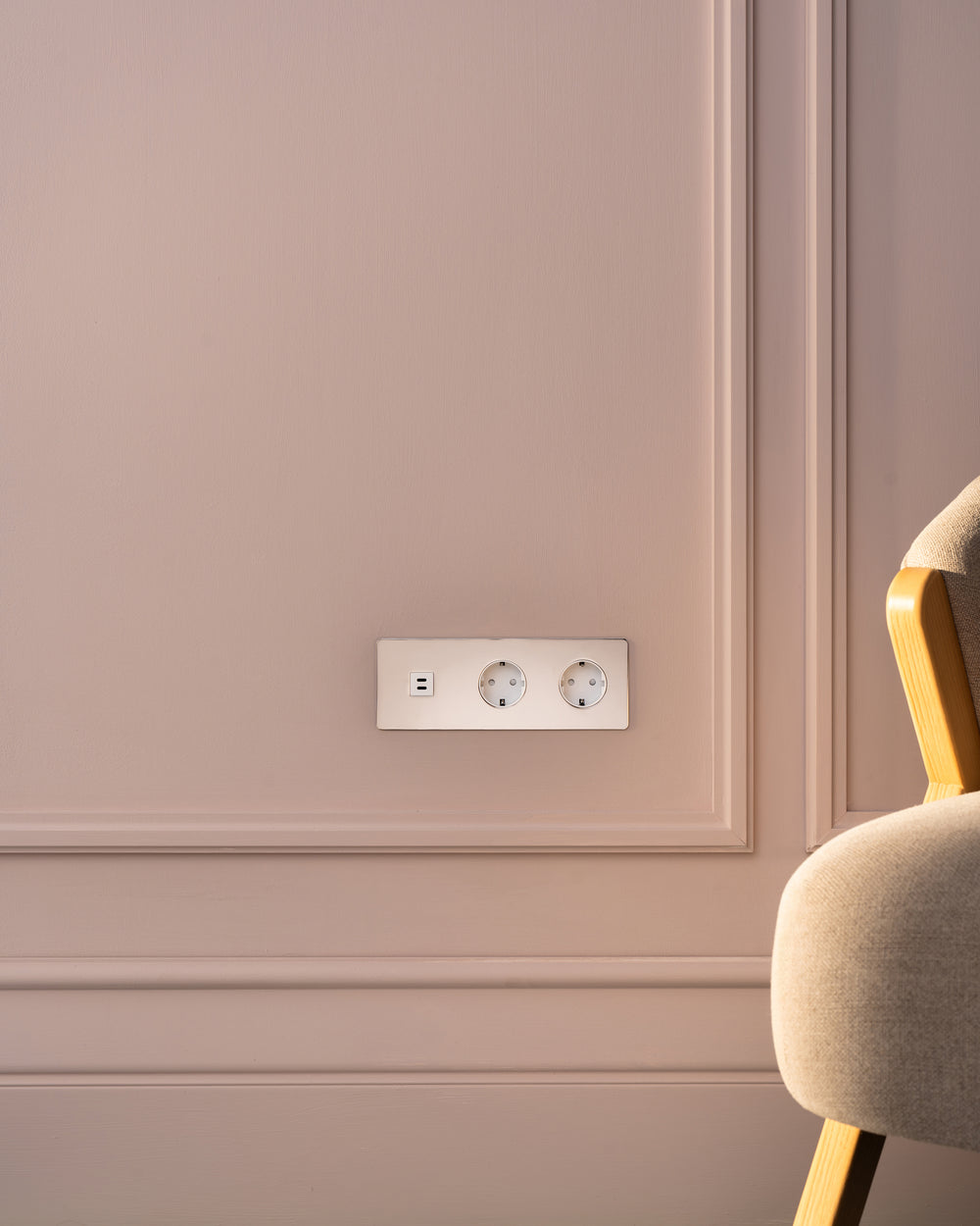 This triple mixed socket combines a USB-C and two Schuko sockets on one plate.