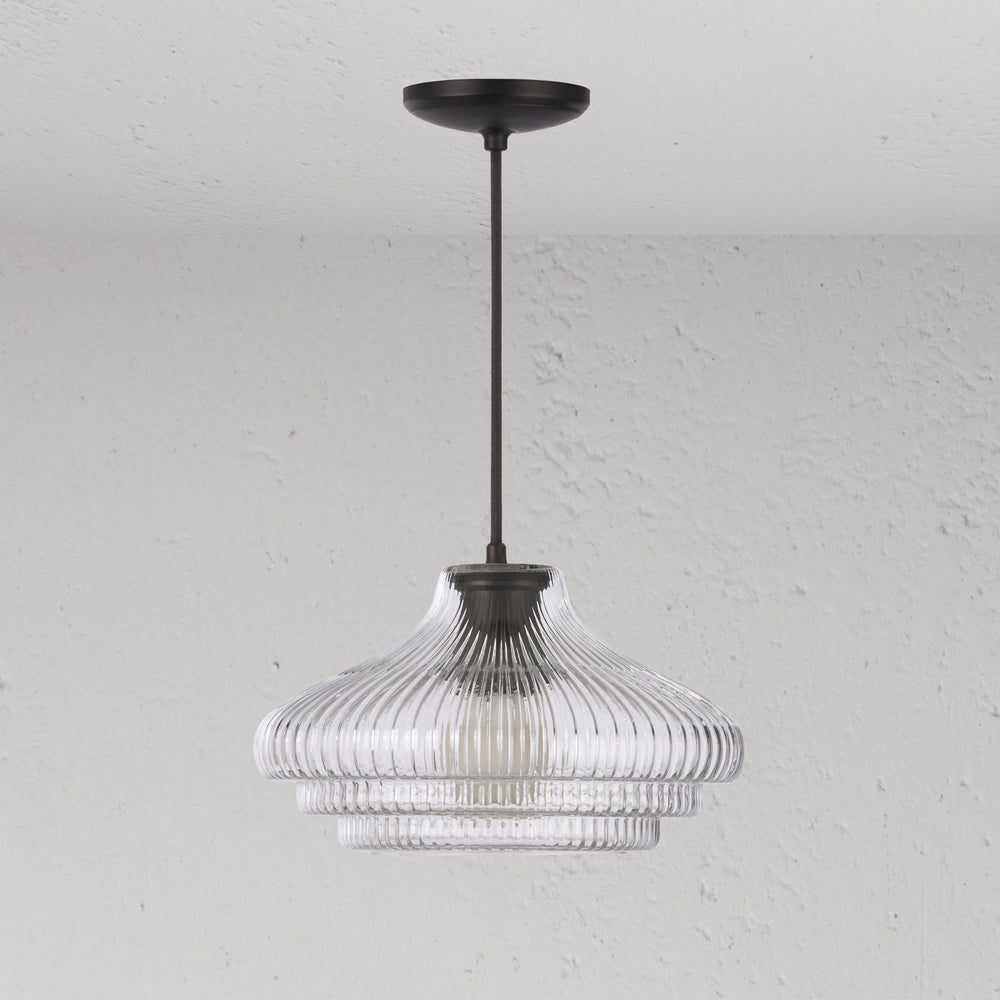 Our Brookfield pendant has an elegantly curved, three-tiered shade and a solid brass bulb holder. It’ll make a subtle statement without outshining other design features in your space.