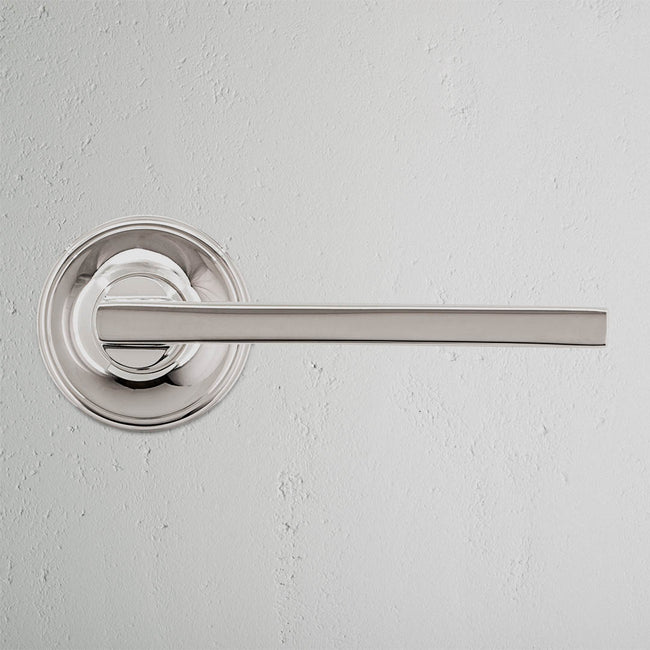 Clayton is probably our most modern door handle thanks to its sleek, flat-surfaced lever (the front-facing surface still has a subtle curve to it for a really pleasing overall feel).