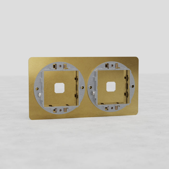 This Kew double 2x switch plate in antique brass works with any two of our antique brass toggle or rotary dimmer switches.