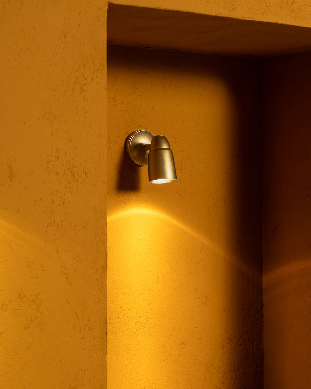 Our wall-mounted Ealing flush spotlight is designed to be directed downwards to illuminate garden paths, flowerbeds and the like.