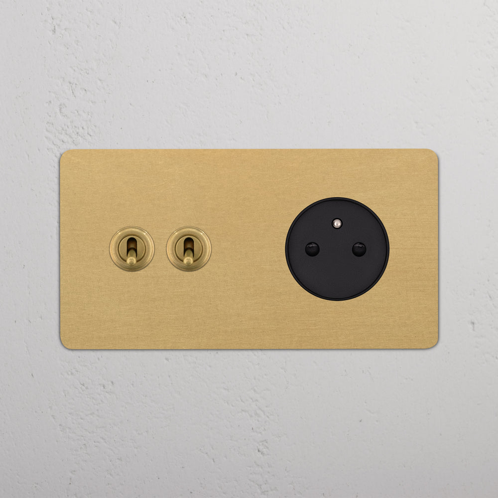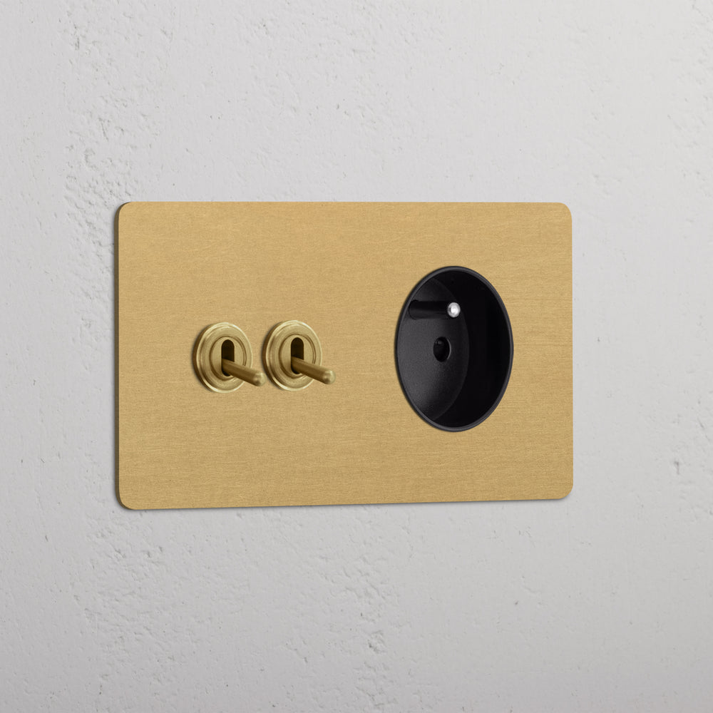 This double mixed switch and socket combines two two-way toggle switches and a French/Belgian socket on one plate.