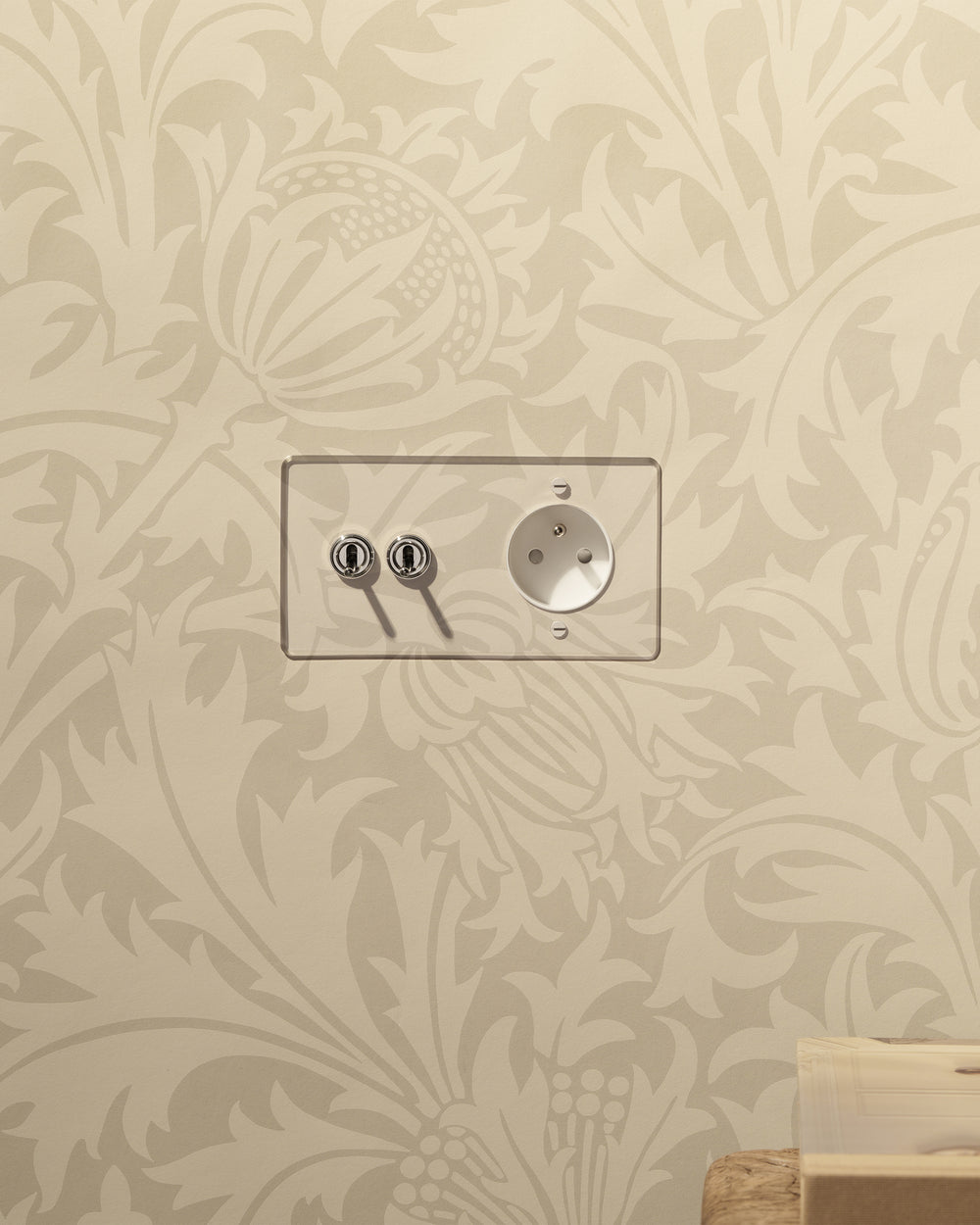 Our clear switches and sockets come with backing paper that you can either paint, or use as a wallpaper template.