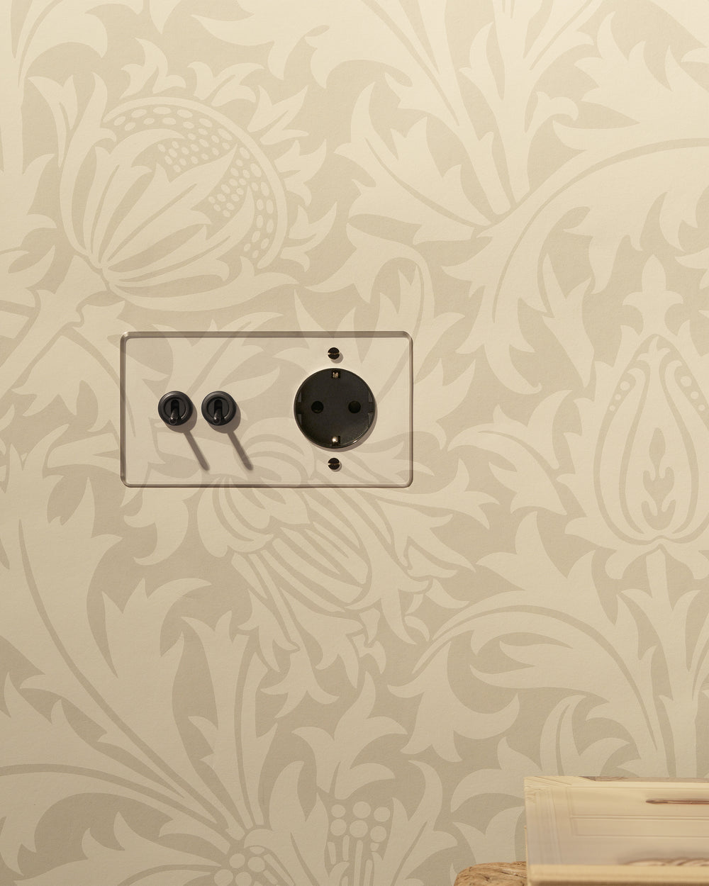 Our clear switches and sockets come with backing paper that you can either paint, or use as a wallpaper template.
