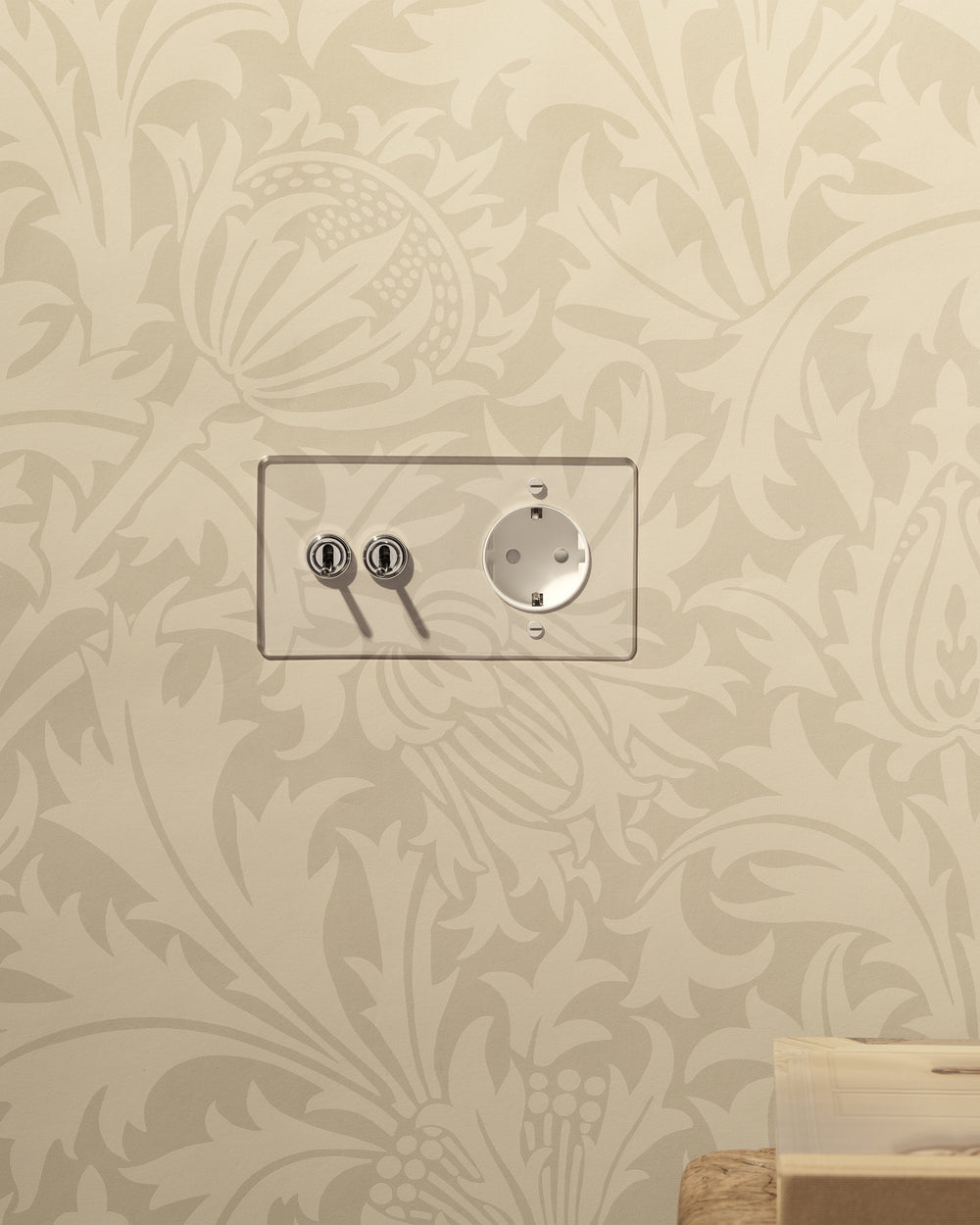 Our clear switches and sockets come with backing paper that you can either paint, or use as a wallpaper template.