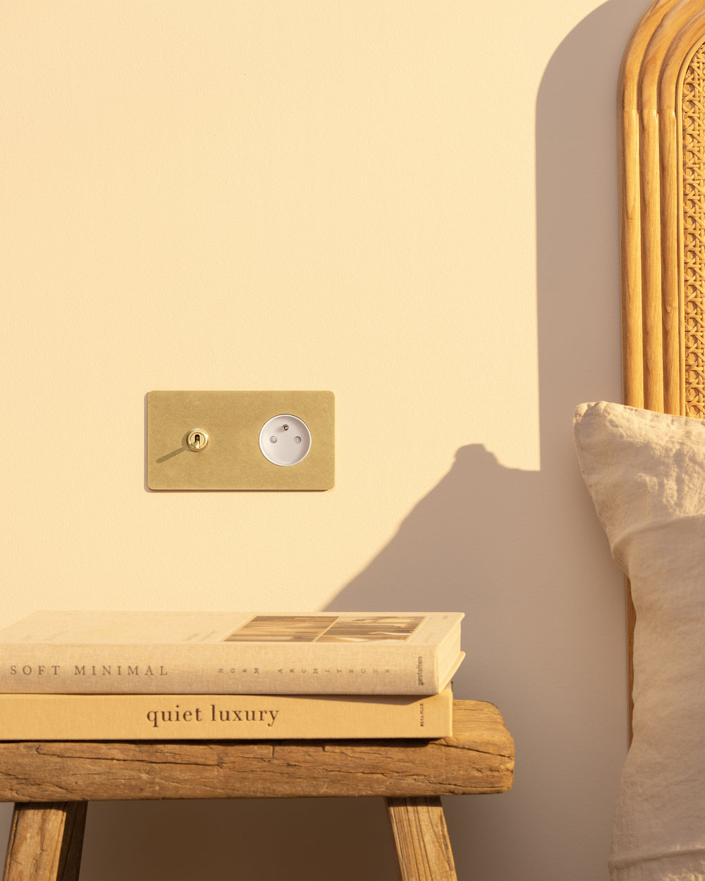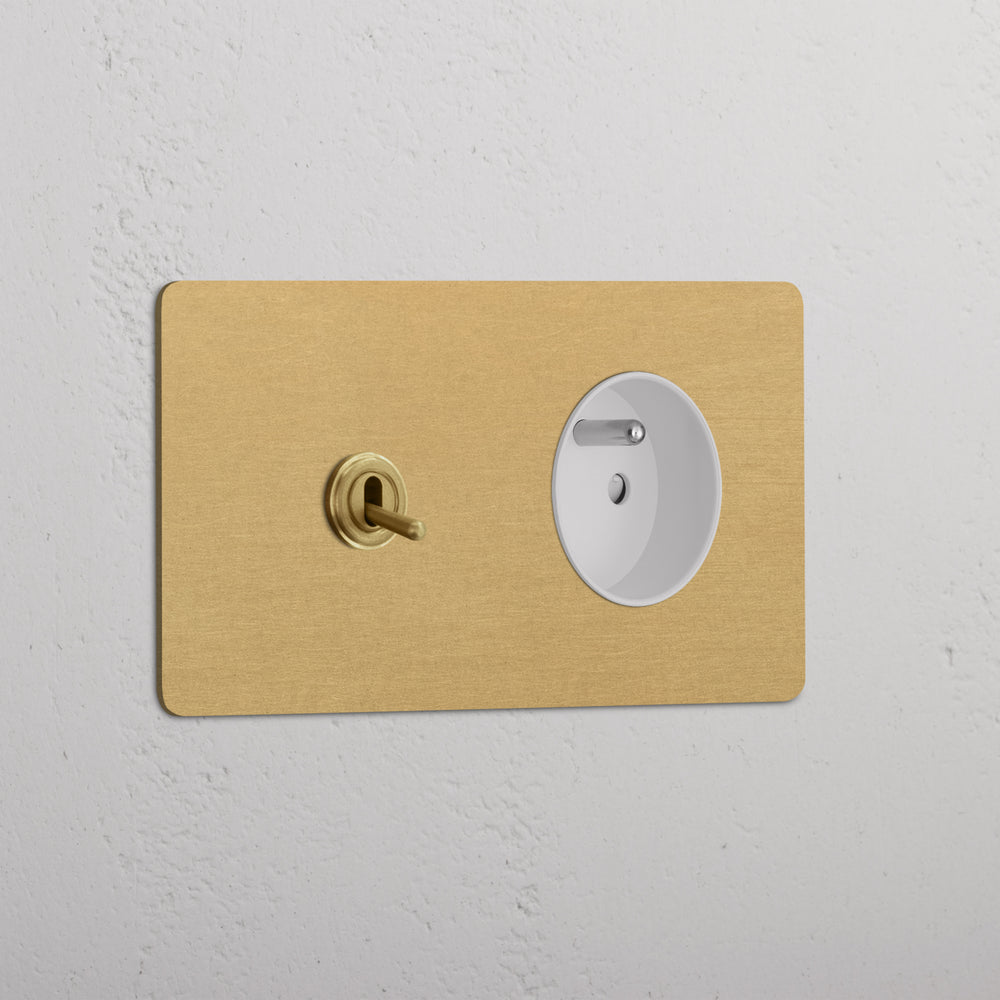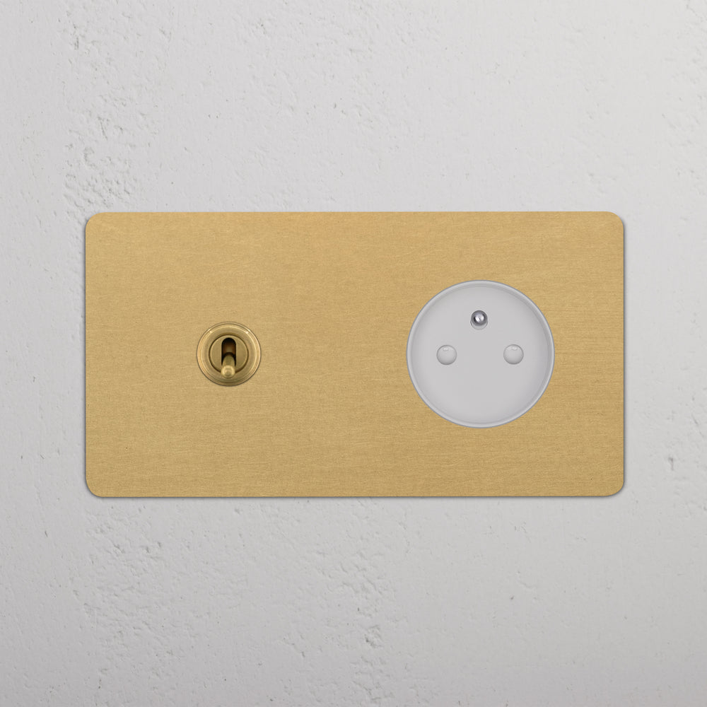 This double mixed switch and socket combines two two-way toggle switches and a French/Belgian socket on one plate.