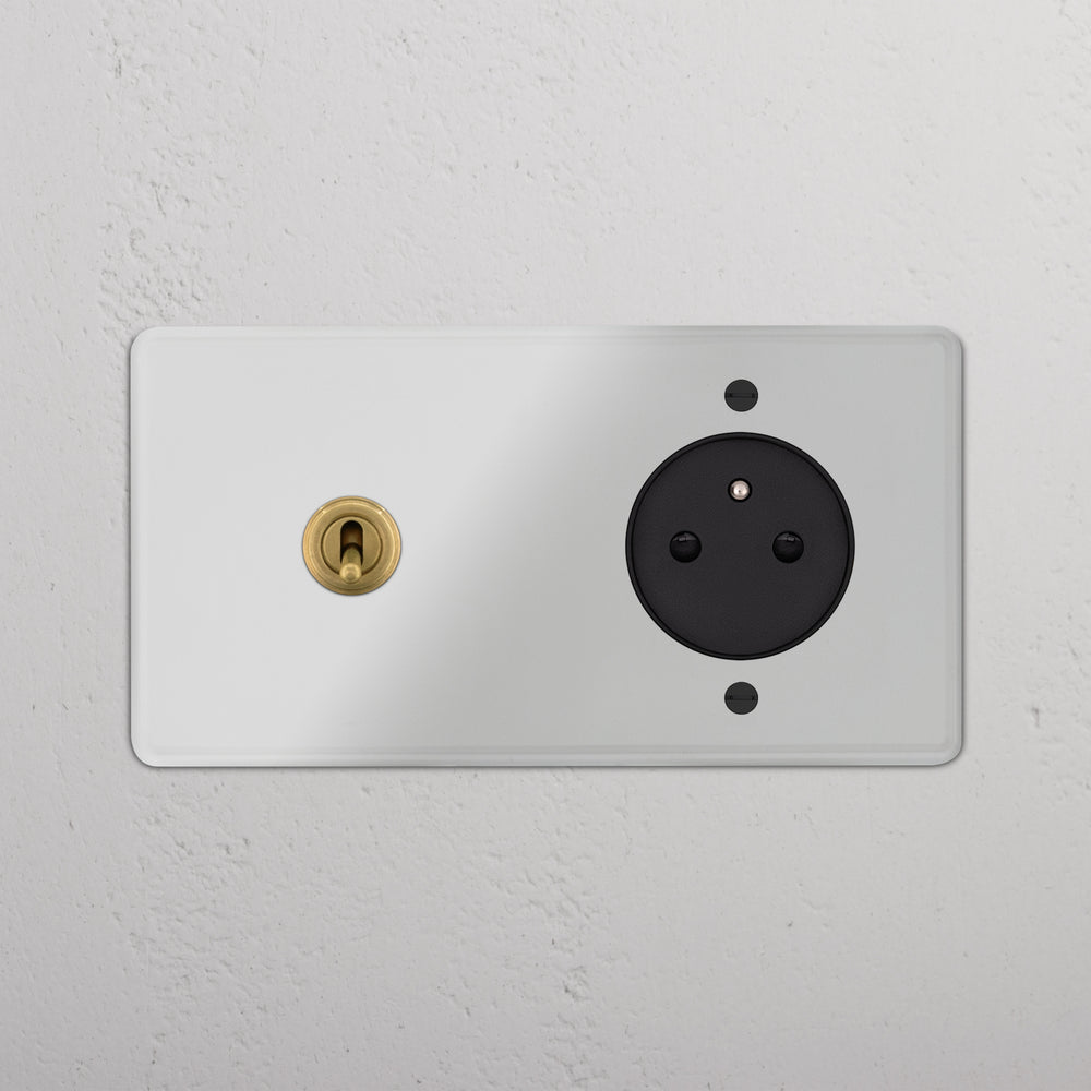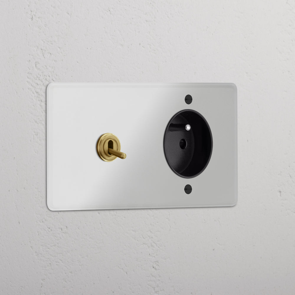 This double mixed switch and socket combines a two-way toggle switch and French/Belgian socket on one plate.