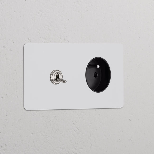 This double mixed switch and socket combines a two-way toggle switch and French/Belgian socket on one plate.
